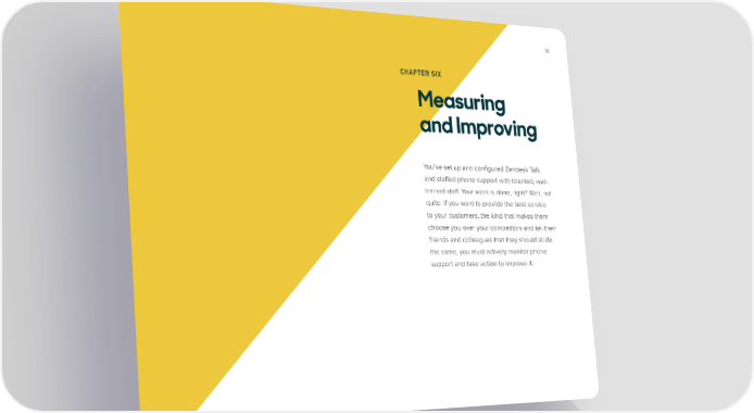 38 CHAPTER SIX Measuring and Improving You’ve set up and configured Zendesk Talk and staffed phone support with talented, well- trained staff. Your work is done, right? Well, not quite. If you want to provide the best service to your customers, the kind that makes them choose you over your competitors and tell their friends and colleagues that they should all do the same, you must actively monitor phone support and take action to improve it.